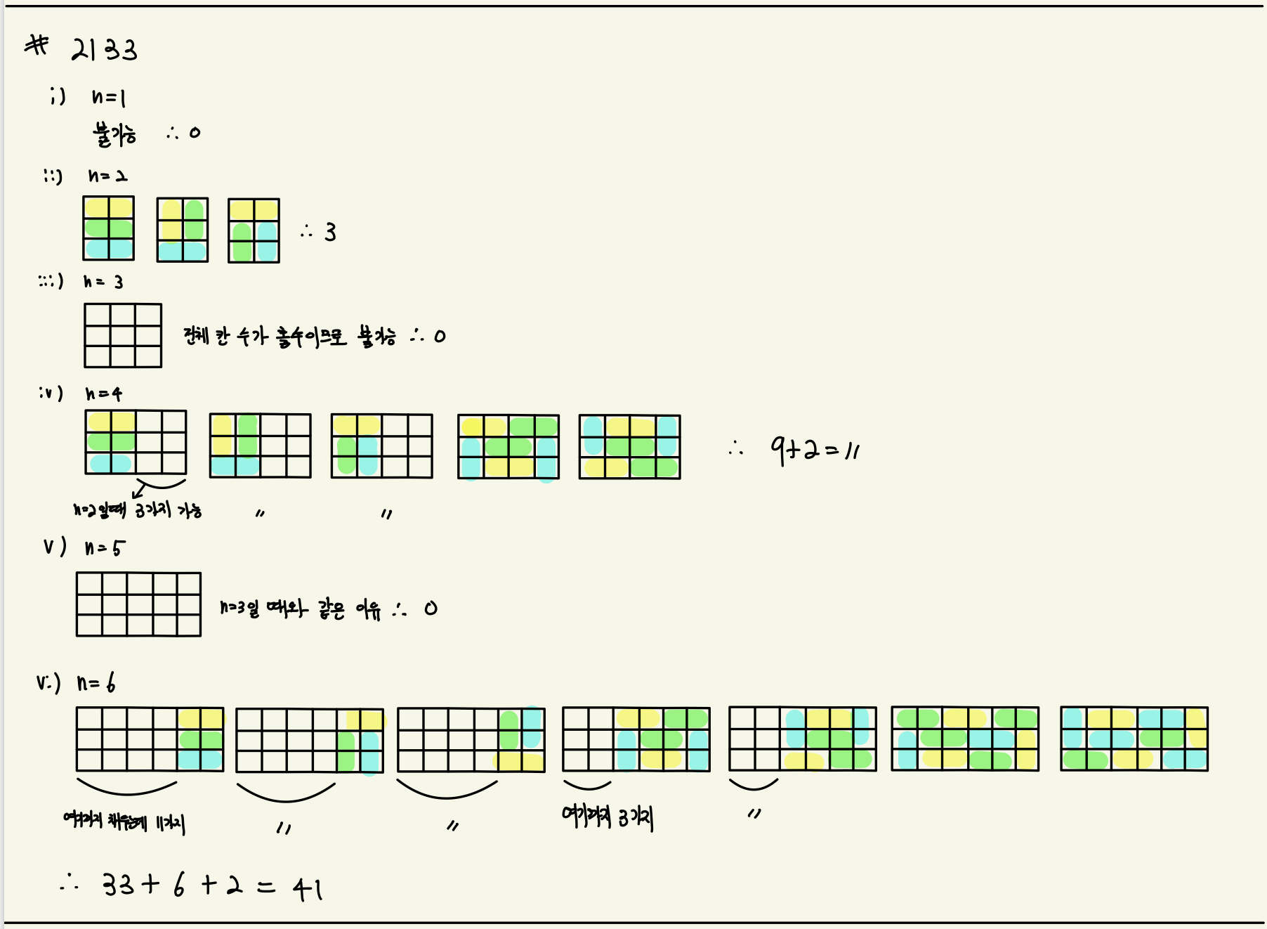 각 경우마다 새로운 조합이 2개씩 생겨난다는 것을 생각치 못하였다.