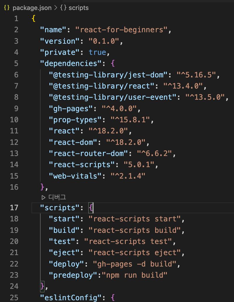 관심없겠지만 gh-pages는 github pages에 결과물을 업로드 할 수 있게 해 주는 패키지이다.