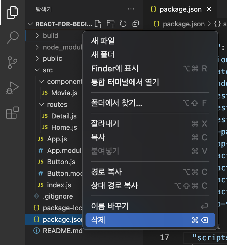 pakage.json의 코드 일부분을 다음과 같이 수정해주자