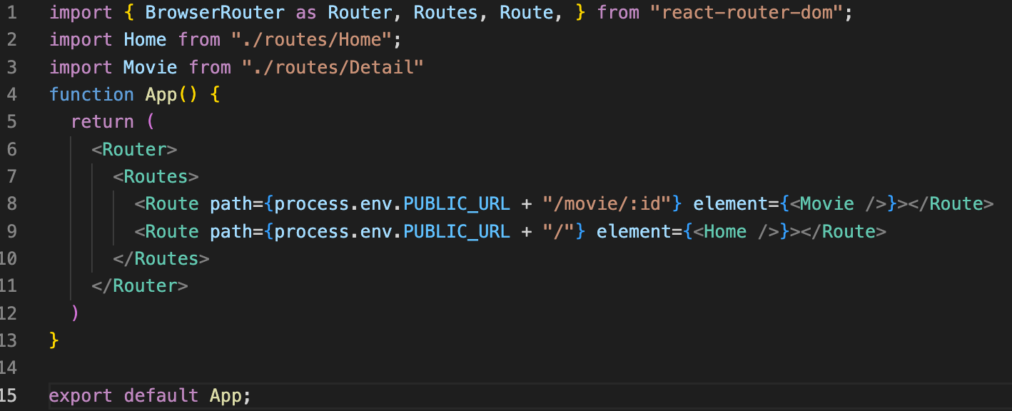 <Route path={process.env.PUBLIC_URL + * 내가 원하는 라우터 *} ~ 그대로 >