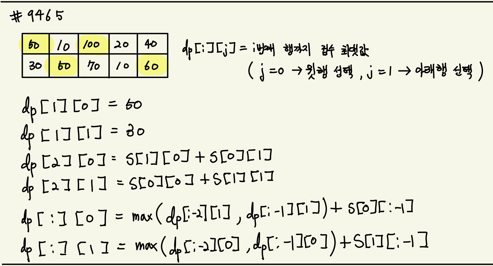 dp[i][0] = max(dp[i-2][1], dp[i-1][1]) + s[0][i-1]