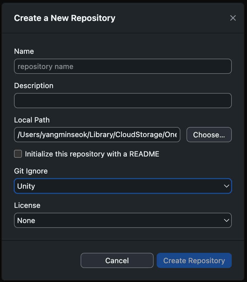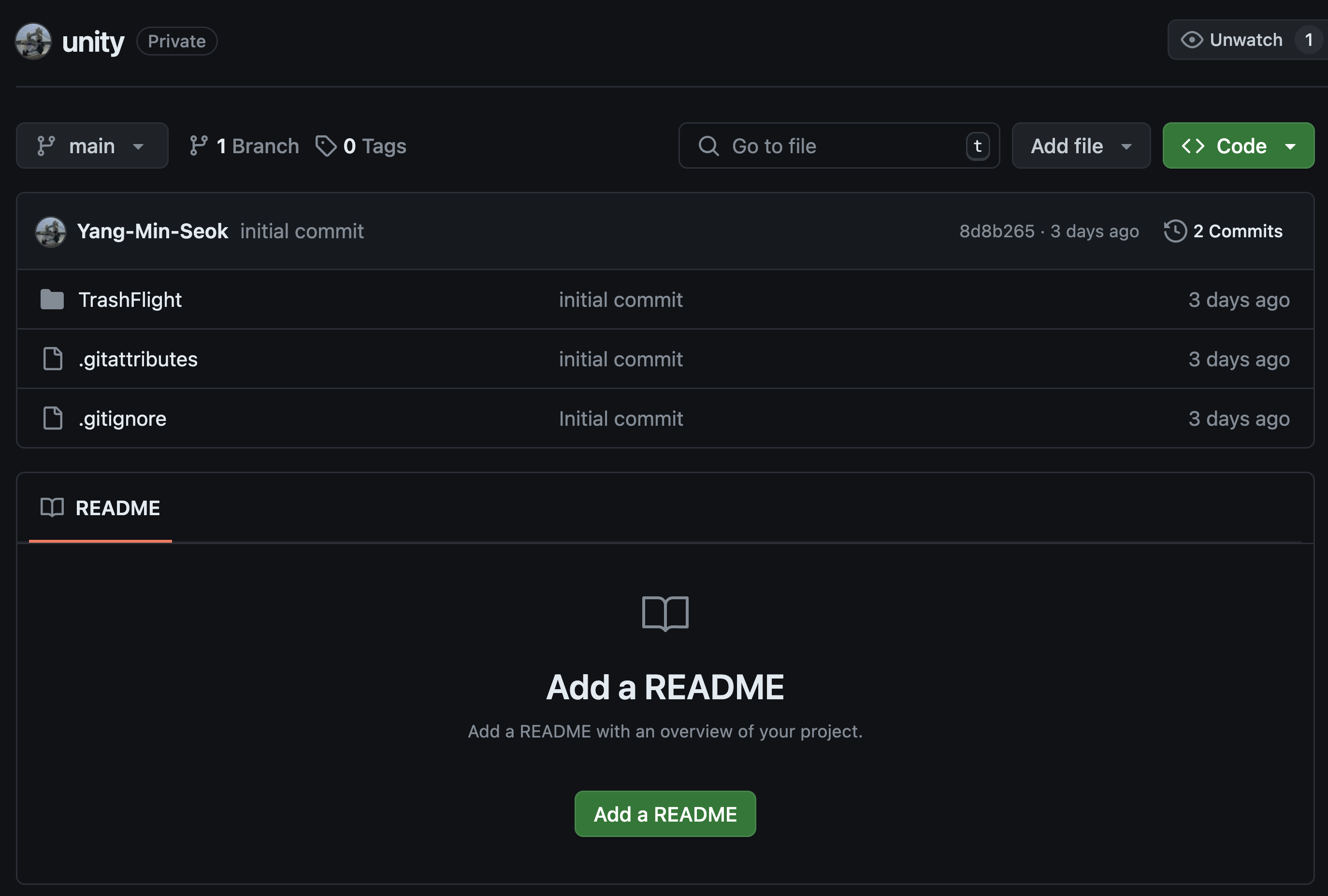 - 레포지토리를 생성할 때, Unity설정으로 만들어 gitattributes 및 gitignore 파일 확보해야 함!