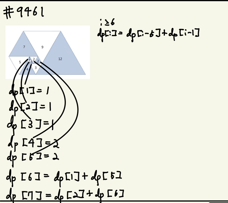 몇 번째 전의 삼각형의 길이를 참조하여 구하는지를 확인한 후 해결하면